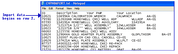 This process does not require the use of Mass Load to populate the Customer/Vendor Specific Part Numbers screen. Collect part number information from your customer in Microsoft Excel, save the file in tab-delimited text (.txt) format, and import it. To accurately import selected information, you must map column headings from the import file to Eclipse's field names on the Customer/Vendor Specific Part Numbers screen.
