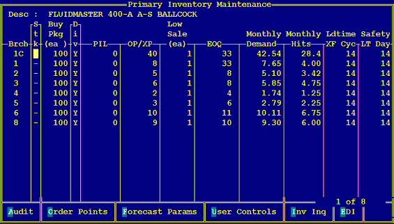 Since seven branches are in need of inventory, 700 items are purchased. This may cause other products that might have been included on the Suggested PO Queue to be dropped from the suggestion because the system tries to meet the vendor target of 500. One product needs a quantity of 700 to be purchased. Other products that are below line point, but not below order point, are eliminated from the purchase.